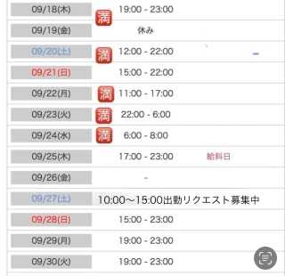 次回の出勤予定や🈳き枠です