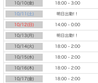 明日18時からの出勤です