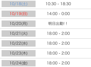 明日は10時半から18時までの出勤です