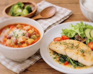 ミネストローネと白身魚のソテー☆