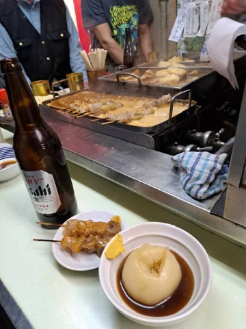 ジャンジャン横丁でどて焼きとおでん、クジラの髭でグビっと。