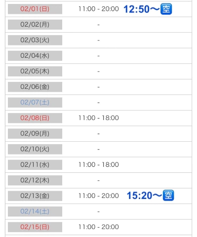 女の子・出勤予定