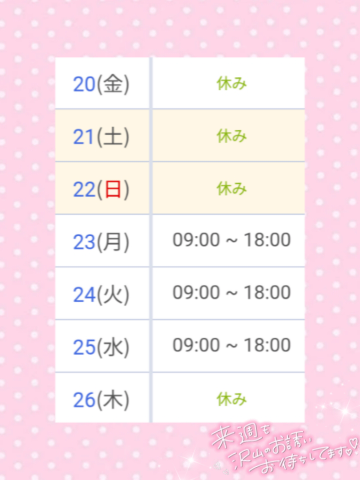 女の子・出勤予定