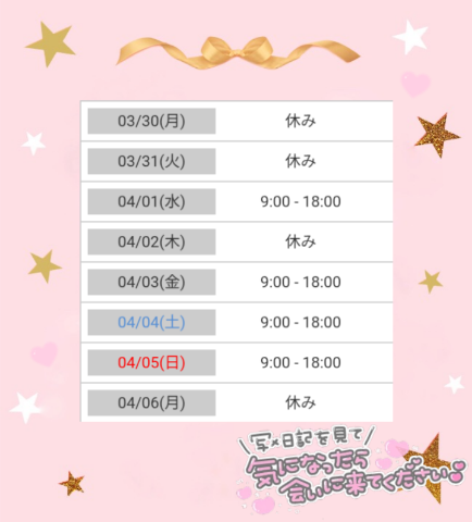 女の子・出勤予定