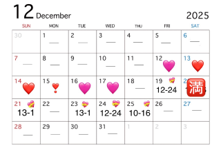 年末年始は『12/26〜1/5』の間お休みいただく予定です。