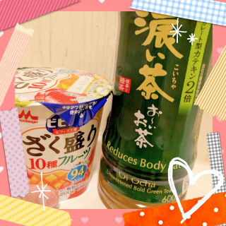 冷たい緑茶とヨーグルトの