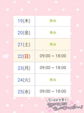15日(日)から出勤します♪