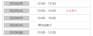 女の子・出勤予定